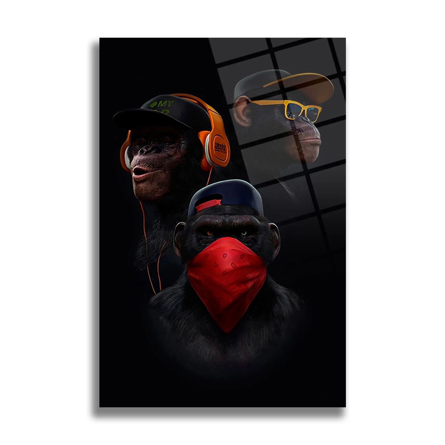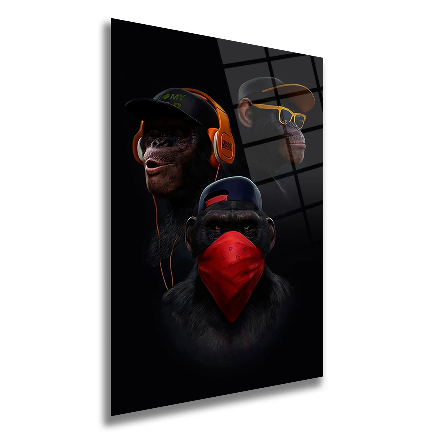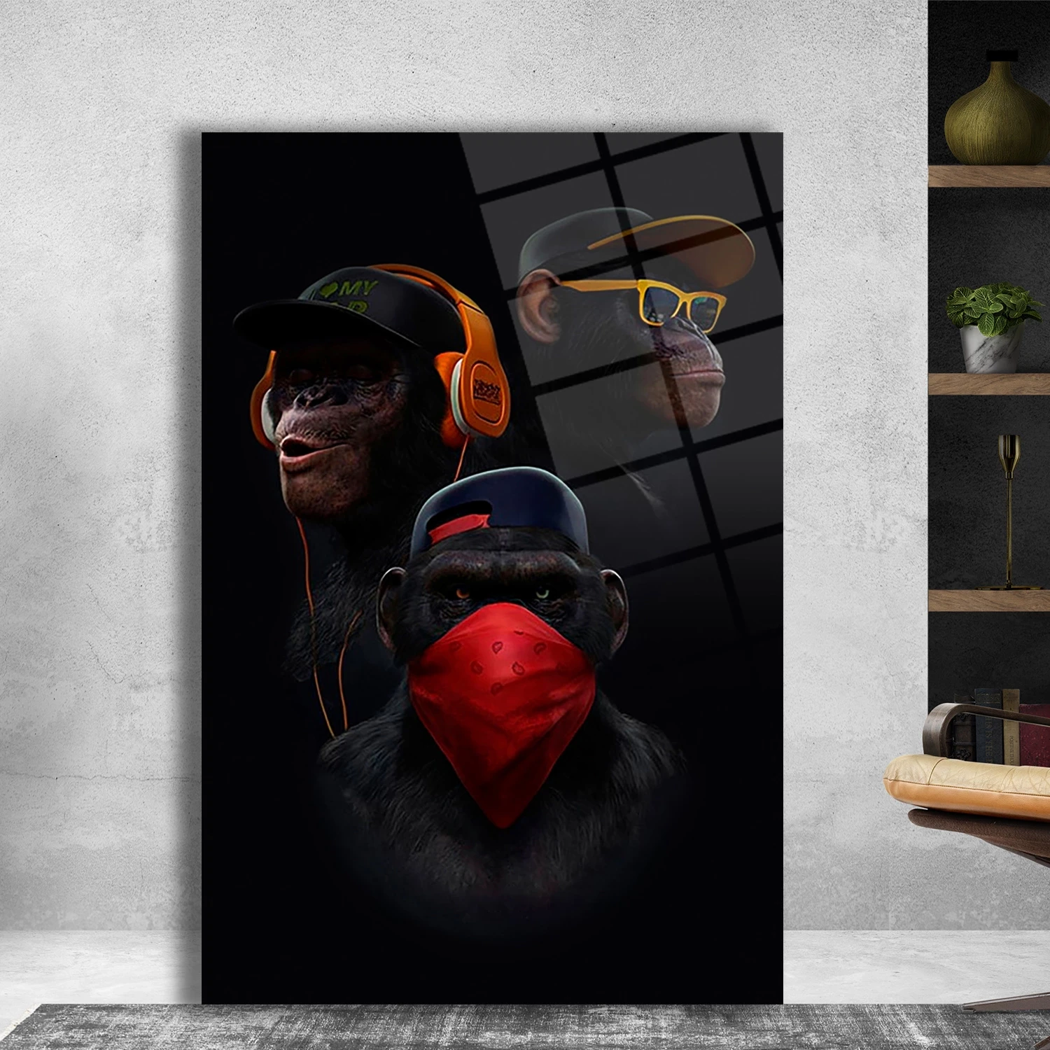 3 Maymun Görmedim Duymadım Bilmiyorum Dikey Cam Tablo