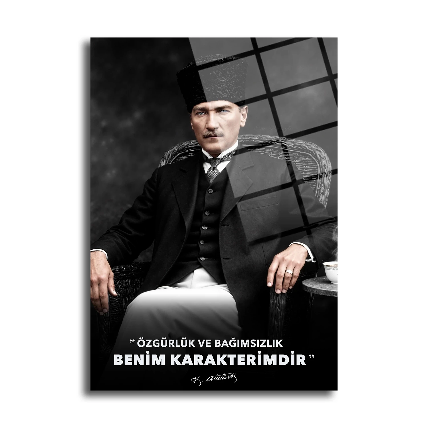 Atatürk – Özgürlük ve Bağımsızlık Benim Karakterimdir Cam Tablo